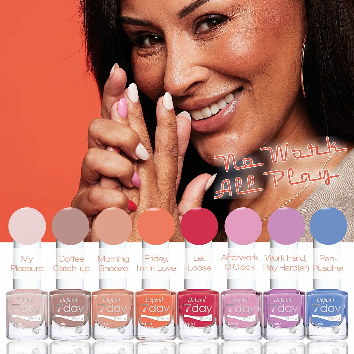 Depend 7day is a nail polish system for when you want a nail polish with super gloss, top-class durability and a “gel feeling”. This hybrid formula lasts for up to a week, is easy to apply, and is easily removed using Depend nail polish remover. No need for an LED/UV lamp – this nail polish system h